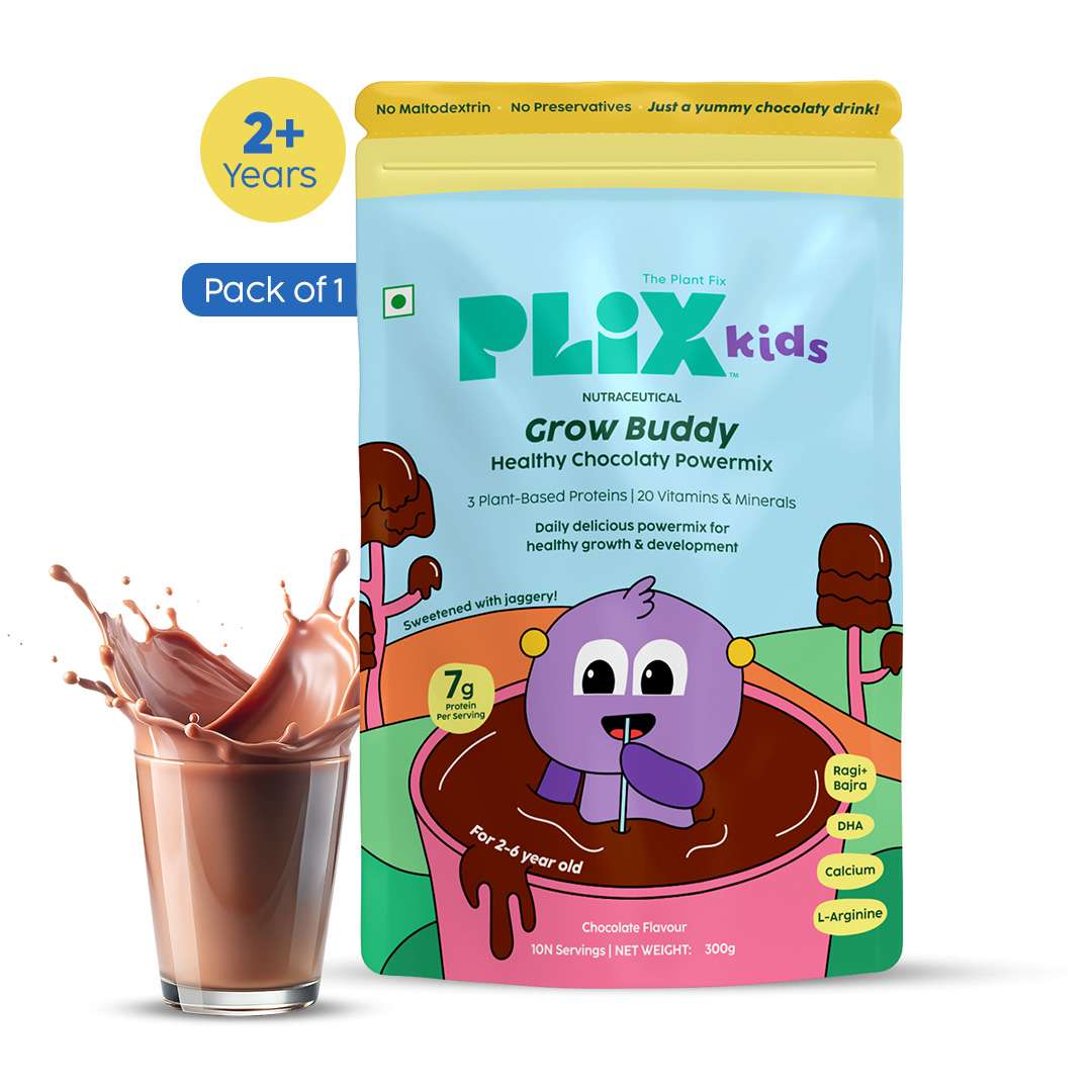 Grow Buddy Powermix is a plant-based protein blend with essential vitamins & minerals that support overall development.